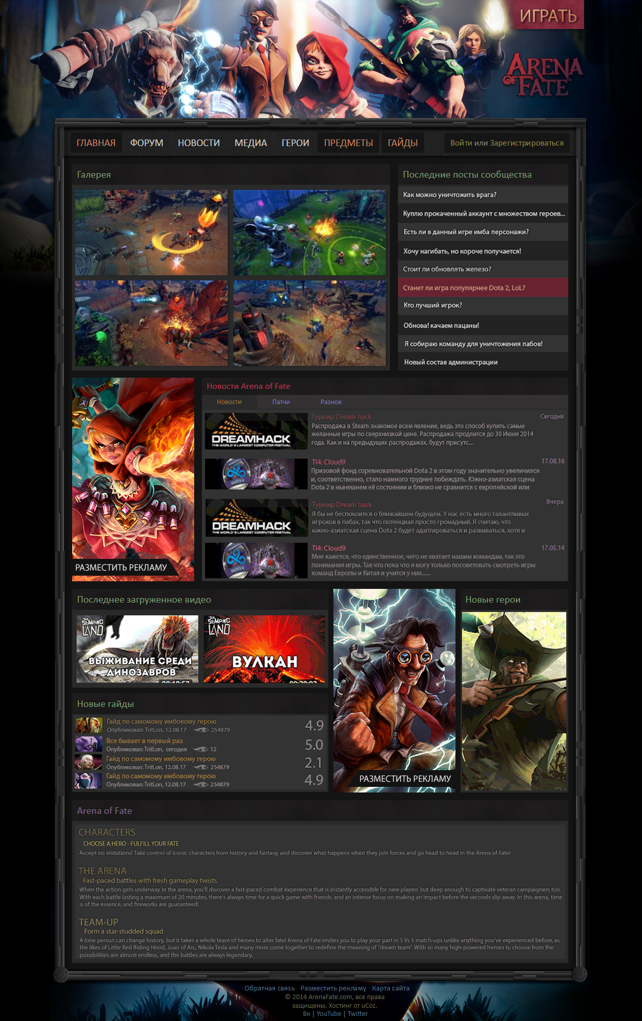 Отличный игровой дизайн, созданная специально для портала про игру Arena of Fate. Сочетает в себе красоту и функциональность, обеспечивающую легкое управление сайтом, каждым посетителем.