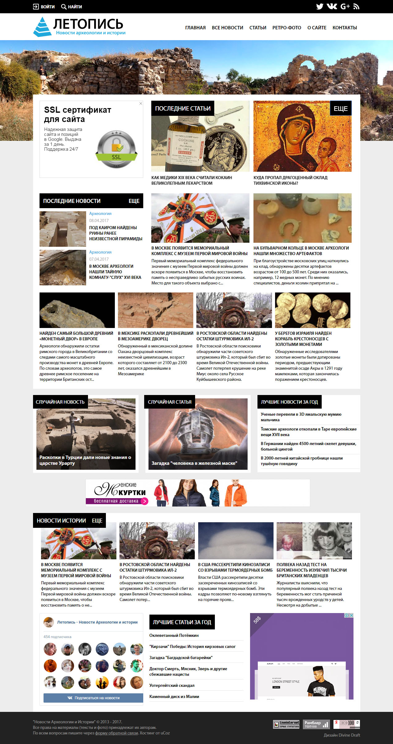 Новости истории, еще никогда не были, так интересны. Каждый раз, когда кто-то посещает данный портал, его встречает большой выбор информации, причем удобный. На главной странице, удалось вывести практически весь сайт. Благодаря простоте дизайна и его функциональности, каждый из посетителей уйдет только в тот момент, когда найдет именно то, что ему было необходимо.