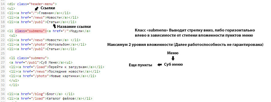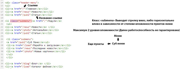 Изменение меню