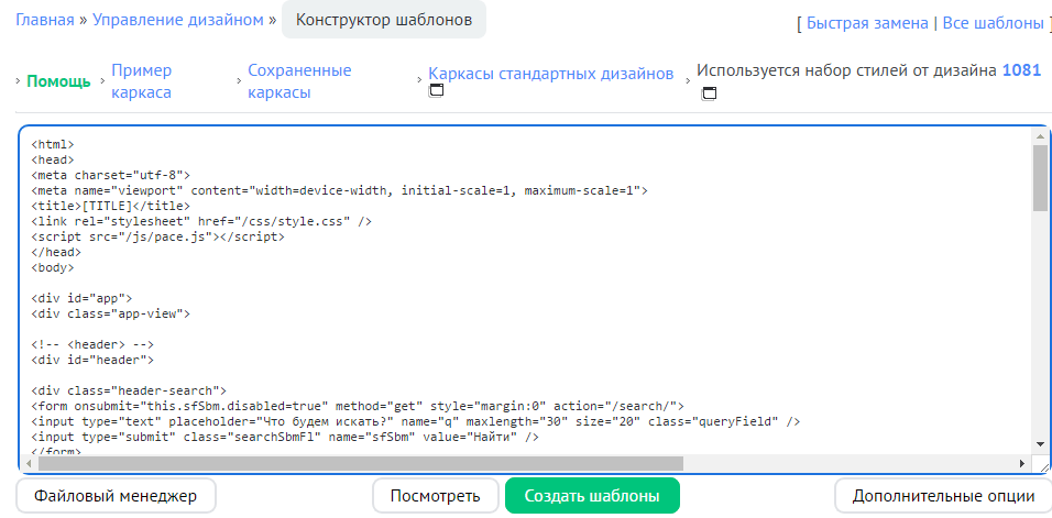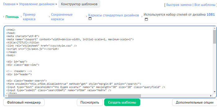 Откройте Панель управления » Управление дизайном »Конструктор шаблонов, поместите в специальное поле код из файла tmpl.txt, который находится в архиве.